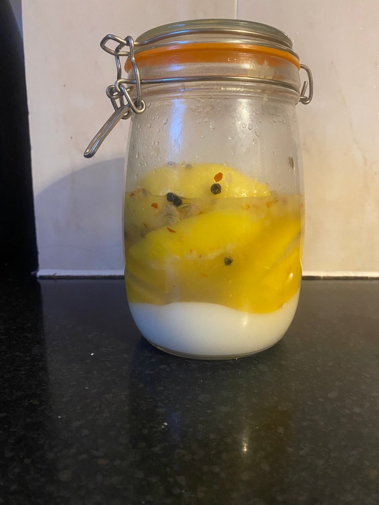 As you can see on the picture some of the lemons come above the surface so it is a good idea to shake the jar semi reguarly as the lemon juice makes it harder for mold to build.